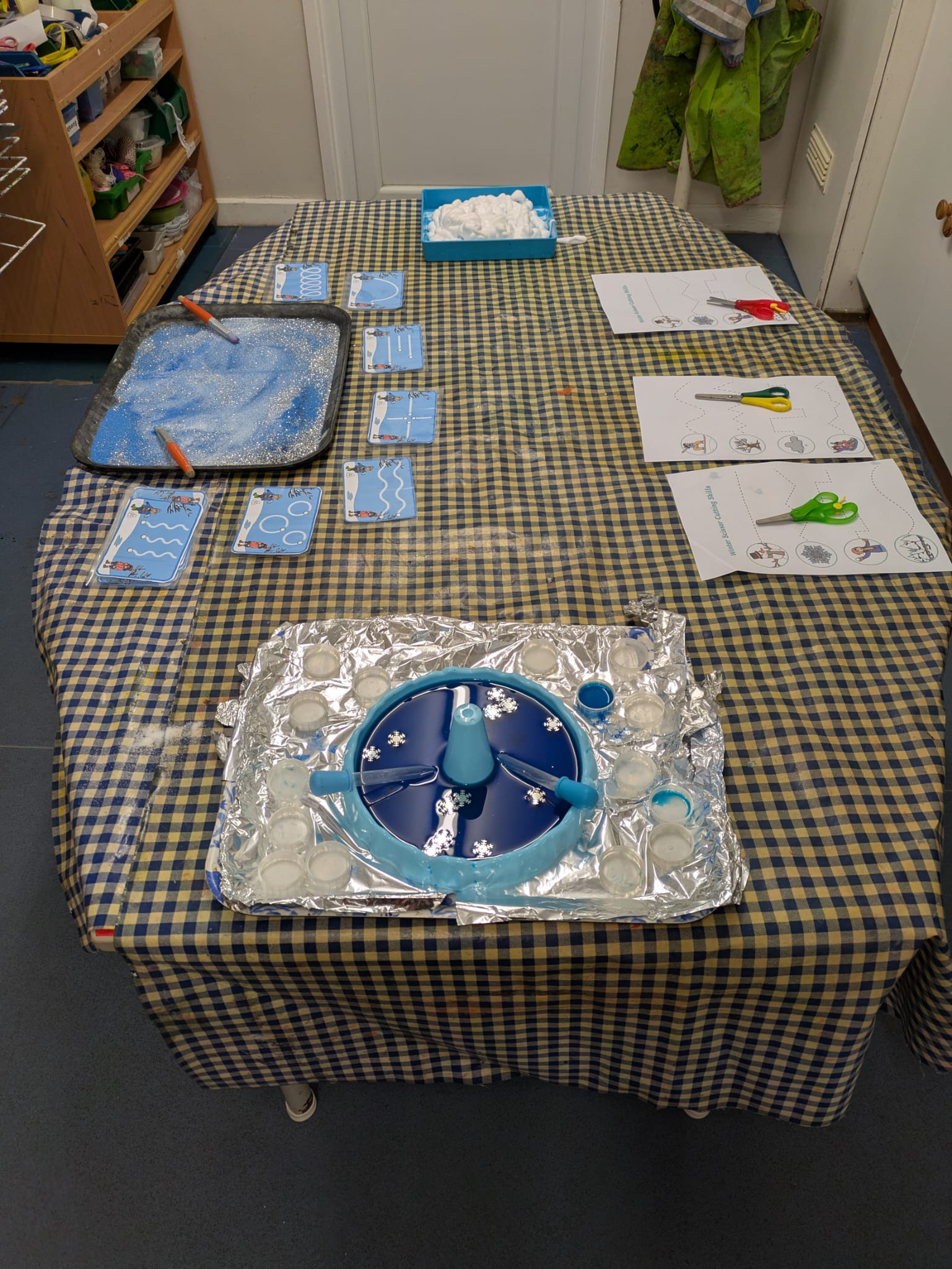 • Use squeezy glue to draw snowflakes.